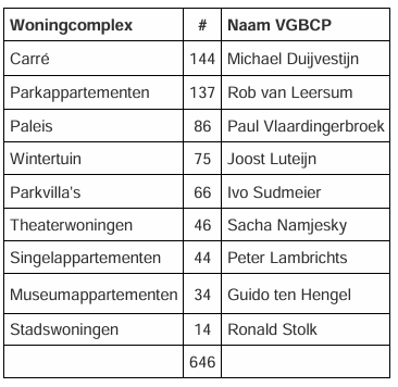 In onderstaand overzicht worden de vertegenwoordigers van alle appartementen in het Chassé Park weergegeven die tezamen de ledenraad vormen. Met de VGBCP kunt u rechtstreeks contact opnemen via vgbcpledenraad@gmail.com.